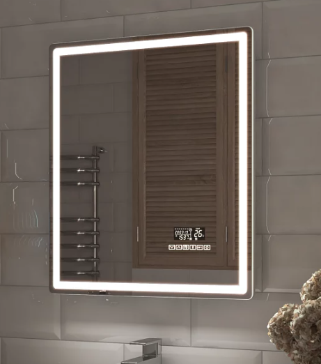 Зеркало подвесное Vigo Geometry Media voice 600 с подсветкой, белый