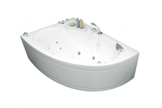 Акриловая гидромассажная ванна «Кайли» правая. Дно с рифленой массажной поверхностью, широкая спинка с подголовником, установка смесителя, лицевой экран