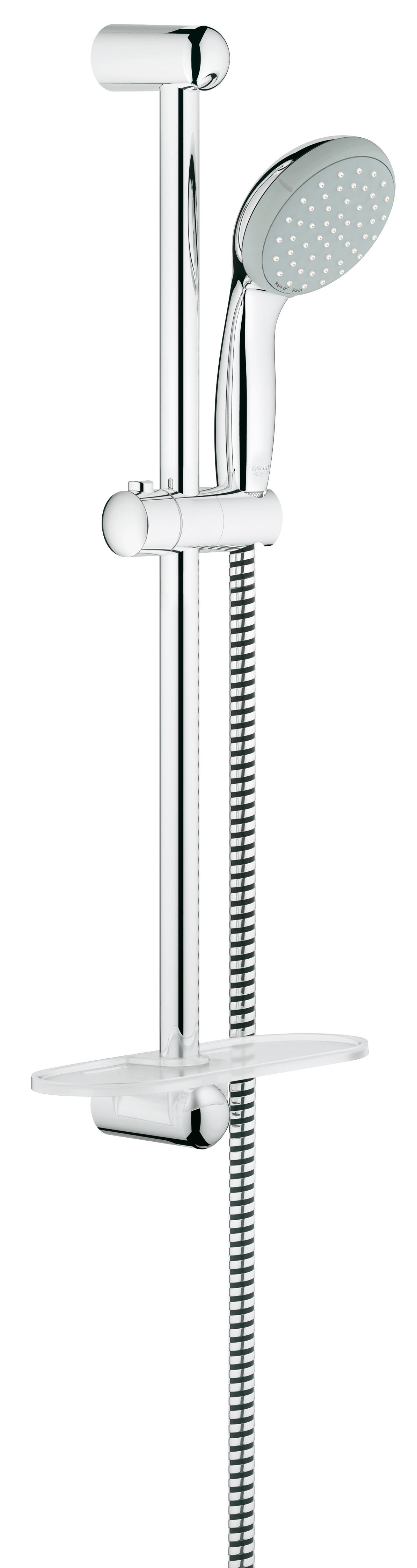 Ручной душ 27 597 00E: 100мм, 2 вида струй, GROHE DreamSpray® превосходный поток воды, GROHE CoolTouch®, GROHE StarLight® хромированная поверхность с системой GROHE SpeedClean® против известковых отложений, внутренний охлаждающий канал для продолжительного срока службы, GROHE ShockProof® силиконовое кольцо, предотвращающее повреждение поверхности при падении ручного душа, может использоваться с проточным водонагревателем;