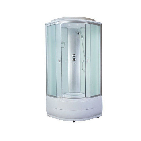 90×90×220см (матовое стекло, белые задние стенки, полукруглый высокий поддон 40см).