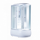 120×80×220см (матовое стекло, белые задние стенки, пульт управления: вытяжка, радио, подсветка, гидромассаж спины - 6 форсунок, ассиметричный высокий поддон 40см. Левая/Правая).