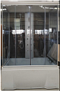 170×85×220см (серое стекло, черные задние стенки, пульт управления: вытяжка, радио, подсветка, излив воды в ванну, гидромассаж спины - 6 форсунок, слив-перелив, высокий поддон 55см), новая система сборки алюминия на защелках.