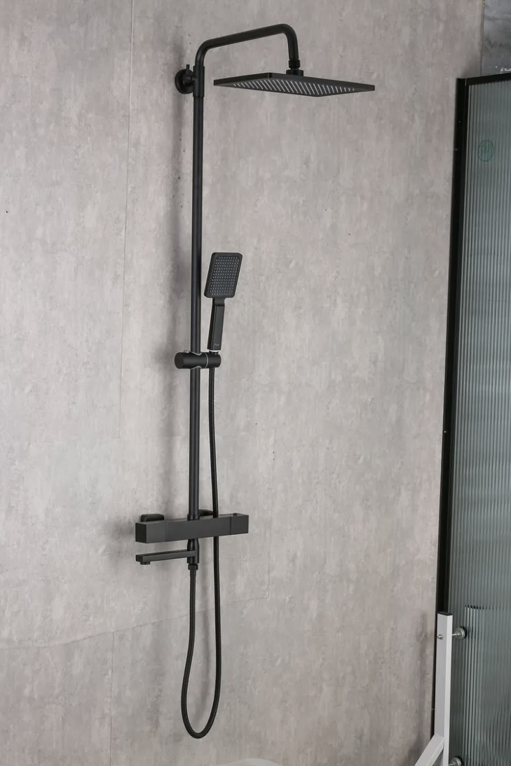 Душевой гарнитур F24007-6 в черном исполнении Стильный душевой гарнитур с механическим управлением, выполненный из латуни в современном черном цвете. Модель отличается надежной конструкцией и тремя режимами работы для комфортного использования. Основные характеристики: - Цвет: черный - Материал: латунь - Управление: механическое - Количество режимов работы: 3 - Длина шланга: 150 см - Тип монтажа: настенный Особенности: - Смеситель в комплекте - Душевая система с термостатом - Гибкий подвод - Качественная латунная конструкция Комплектация: - Душевой гарнитур с насадкой - Смеситель - Шланг длиной 150 см - Комплект для настенного монтажа Современное решение для организации комфортного душевого пространства с точной регулировкой температуры воды