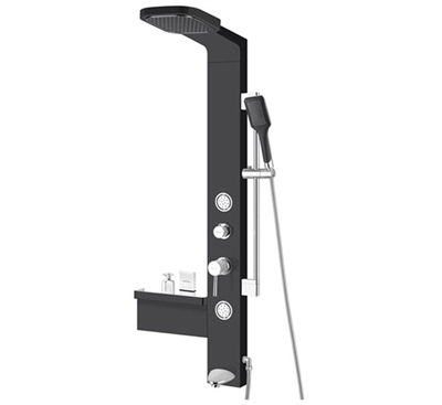 Новая душевая система. Душевая панель с горизонтальными соплами для воды, тропический душ сверху, смеситель, маленькая душевая лейка,полка для принадлежностей.Все это в одной системе.Название:Душевая система с тропическим душем и душевой панелью Класс сантехники:люкс Модель: GAPPO G2427 Управление: смеситель, переключатель режимов Материал: доп. элементы,аксессуары: композитные материалы, пластик керамические вставки с декоративный узором,росписью Комплектация: Душевая панель Полка Душевой гарнитур (шланг+лейка) Тропический душ Общая инструкция-вкладыш по сантехнике GAPPO Ключи,накладки (если предусмотрено) Цвет:черный Монтаж:на вертикальную поверхность, крепление на стену, соединяется с трубами через шланги для воды. Шланги прячутся под полку. Тип переключения режимов: картриджный дивертор
