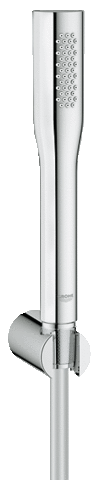 Артикул 27369000 Коллекция Euphoria Cosmopolitan Способ монтажа вертикальный Рекомендованное минимальное давление 1 бар Гарантия производителя 5 лет Защита от перекручивания нет Вес, кг 0,59 Ручной душ Euphoria Cosmopolitan 27 400 000: 1 вид струй, GROHE EcoJoy® технология совершенного потока при уменьшенном расходе воды, GROHE CoolTouch® полностью исключается вероятность ожога о внешнюю поверхность смесителя, GROHE StarLight® хромированная поверхность с системой GROHE SpeedClean® против известковых отложений, ограничитель расхода воды 9,5 л/мин; Держатель ручного душа Rainshower 27 056 000; Душевой шланг Silverflex 28 364 000: 1500 мм.