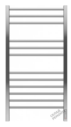 Электрический полотенцесушитель Terminus «Лесенка» Основные параметры: Форма: Лесенка (12 секций) Материал: Нержавеющая сталь Отделка: Хром Межосевое расстояние: 500 мм Ширина: 530 мм Высота: 1000 мм Вес: 7 кг Технические характеристики и оснащение: Нагреватель: Сухой ТЭН Мощность: 140 Вт Напряжение: 220 В Подключение: Нижнее (скрытое или к розетке) Управление: Встроенный терморегулятор Площадь обогрева: до 2.5 м²
