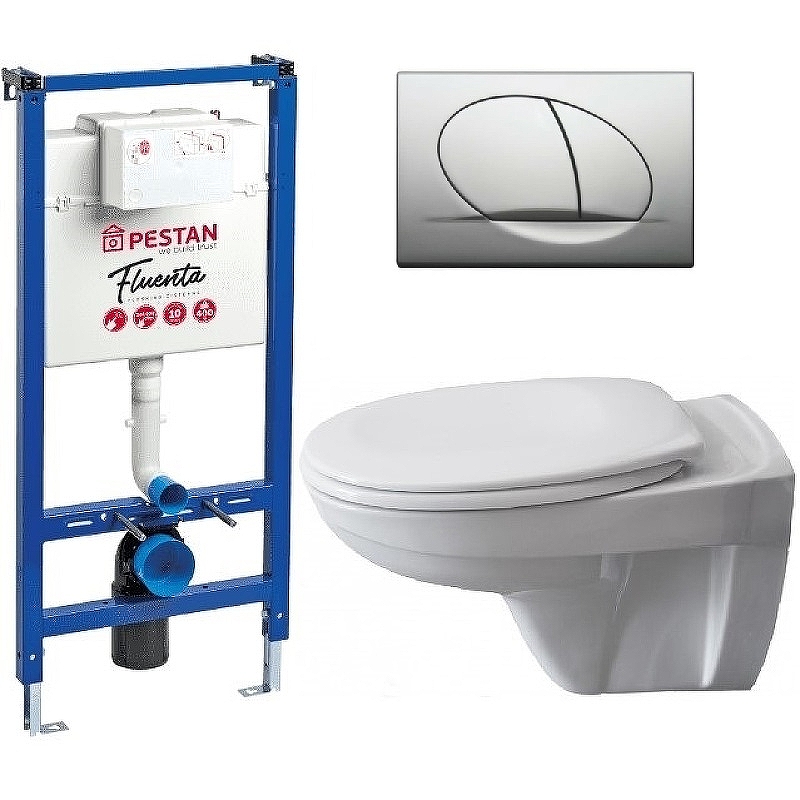 Комплект унитаза с инсталляцией Pestan Fluenta SET40006460PM с сиденьем Микролифт и клавишей смыва Хром матовый