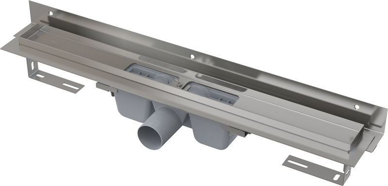 Водоотводящий желоб предназначенный для установки перфорированной решетки. Нержавеющий порог желоба формирует визуальный переход между плиткой и вставленной решеткой. Вода втекает в желоб через края и отверстия решетки. Желоб предназначен для установки к стене. Вертикально регулируемый «воротник» обеспечивает простоту установки и превосходную изоляцию стен душевой при различной толщине плитки.