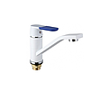 F4534 смеситель для раковины/кухни, картридж 35 мм, белый/хром, на гайке, шесть сменных накладок на ручку в комплекте Вид: Для кухни Управление смесителем: Однорычажный Материал корпуса: латунь Покрытие: хром Способ монтажа: Гайка На одно отверстие Тип подводки: гибкая Цвет: Хром Белый