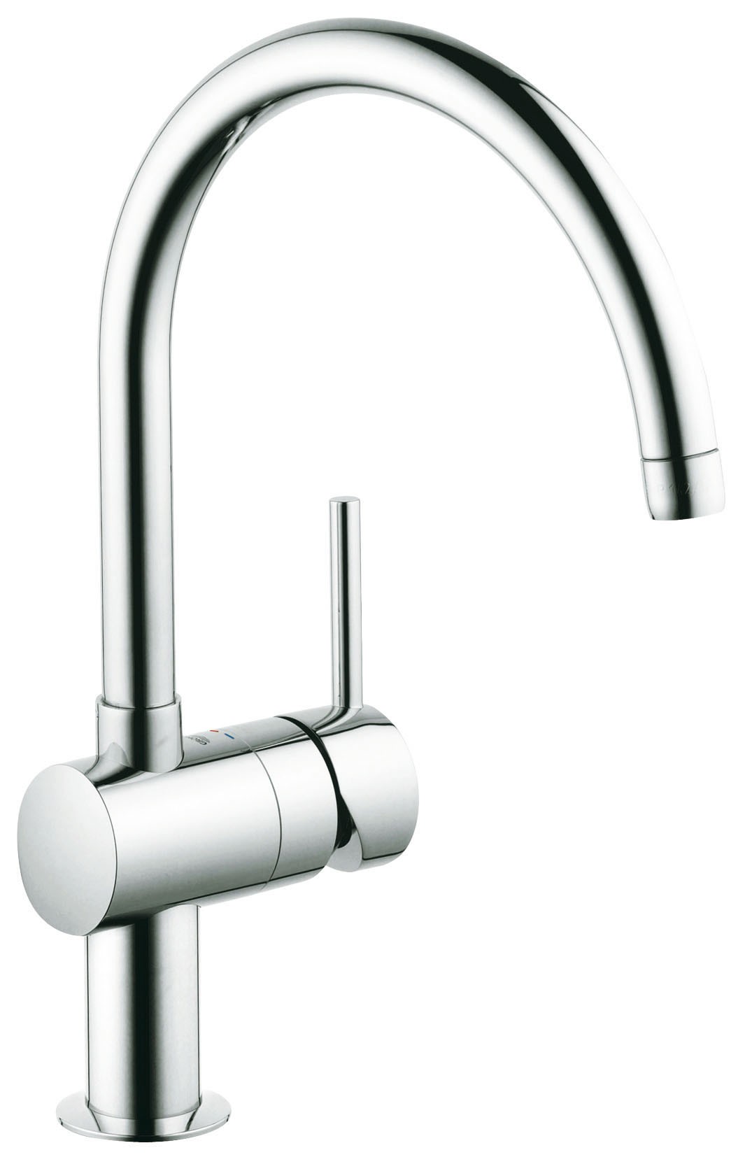 Монтаж на одно отверстие GROHE SilkMove® керамический картридж Ø 46 мм Регулировка расхода воды Поворотный трубкообразный излив Аэратор Гибкая подводка Система быстрого монтажа Дополнительный ограничитель температуры (46308000 (Огранич.темп. для картр.46048,46386)) Цанговый зажим 3/8″ GROHE StarLight® хромированная поверхность