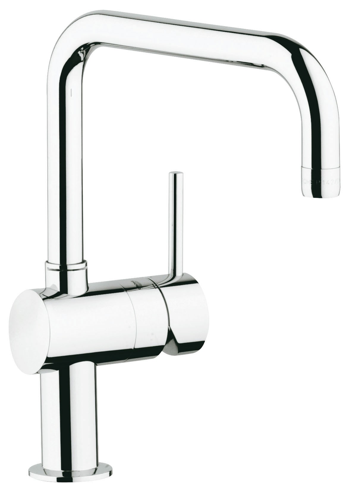 Монтаж на одно отверстие GROHE SilkMove® керамический картридж Ø 46 мм Регулировка расхода воды U-излив Поворотный трубкообразный излив Аэратор Гибкая подводка Система быстрого монтажа Дополнительный ограничитель температуры (46308000 (Огранич.темп. для картр.46048,46386)) GROHE StarLight® хромированная поверхность Выбор радиуса поворота: 0° / 150° / 360°
