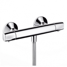 Hansgrohe Ecostat E термостат для душа Арт. 13125000 кнопка Ecostop (ограничивает расход воды до 10 л/мин), предохранитель на 38C картридж MTC, защита от обратного тока воды предустановленное ограничение температуры горячей воды расход воды 20 л/мин штихмас 150 ± 12 мм эксцентрики с шумопоглощающим эффектом