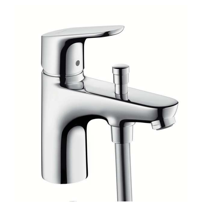 Hansgrohe Focus Е2 смеситель на край ванны Арт. 31930000 Монтаж на край ванны керамический узел смешивания крепление рукоятки Boltic ограничитель температуры воды кнопка с клапаном остановки/молниеотвода автоматическое переключение душ/ванна расход воды до 20,5 л/мин подходит для проточных водонагревателей