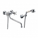 Особенность: Смеситель для ванны с длинным изливом, двухзахватный, латунь, увеличенное никель-хромовое покрытие, керамические кран-буксы с углом поворота 180 гр.