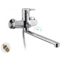 Технические характеристики Артикул: R22072 Коллекция: R072 Производитель: FRUD (Фруд) Размеры (см.): –x–x– см. Назначение: Для ванны Управление: Однорычажные Излив: Длинный, Поворотный, Нижний Длина излива: 35 см Аэратор: Frud Механизм: Керамический 40 мм Переключение на душ: Поворотное 180° Способ монтажа: На два отверстия, Настенные Цвет: Хром Материал: Латунь Стиль: Современные В комплекте: Душевой шланг 150 см, Душевая лейка, Держатель лейки, Отражатели, Комплект эксцентриков