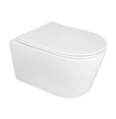 AZ-0513R — Подвесной унитаз серии Ollin Современный подвесной унитаз полукруглой формы из высококачественной керамики. Модель с глянцевым белым покрытием отличается удлинённой чашей (53.5 см) и оптимальной высотой для комфортного использования. Безободковая конструкция обеспечивает легкий уход и гигиеничность. Технические характеристики: Материал: керамика Покрытие: глянцевое Цвет: белый Форма: полукруглая Направление выпуска: горизонтальный Габариты: 36 × 53.5 × 37.1 см Функциональные преимущества: Инновационная система слива "Воронка-водоворот Горнадо" Технология глубокого смывания Система "Антивсплеск" Быстросъемное сиденье из дороголаста Система плавного закрытия "Микролифт" Скрытый монтаж