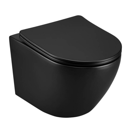 Унитаз Calypso подвесной 490*370*360мм черный, торнадо ультратиий фронтальный, сиденье дюропласт микролифт, быстросъем, 1 кнопка, горизонтальный выпуск