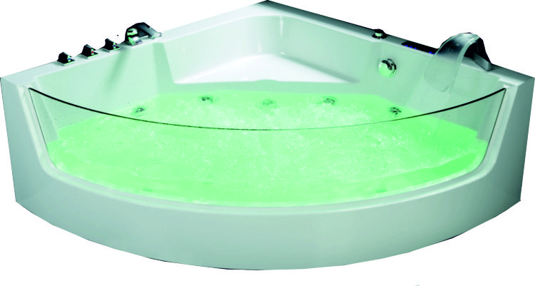 Ванна Acrylic+ABS с гидромассажем, аэромассажем, ручной душ, смеситель с дивертором, налив воды из нержавеющей стали, аэромассаж с LED-подсветкой , сесорный пульт № 8, подголовник силикон/оргстекло. Передняя панель ванны: закаленное стекло толш. 10мм. Гидрофорсунки-4, аэрофорсунки-12, внутр.выс.440мм 1500*1500*590