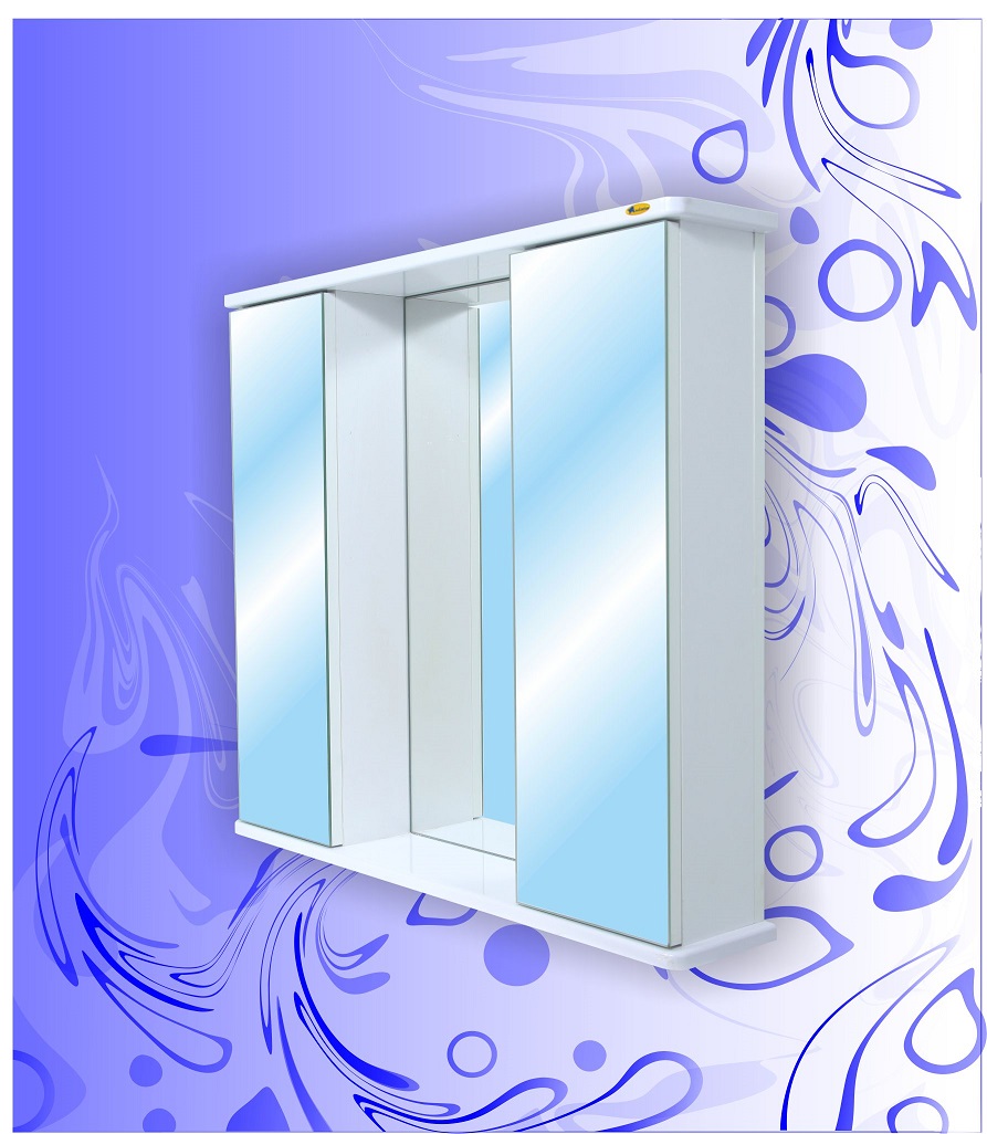 внешние полки - МДФ в пленке, основа и внутренние детали - влагостойкое ДСП, зеркало с обработкой шлифовка,