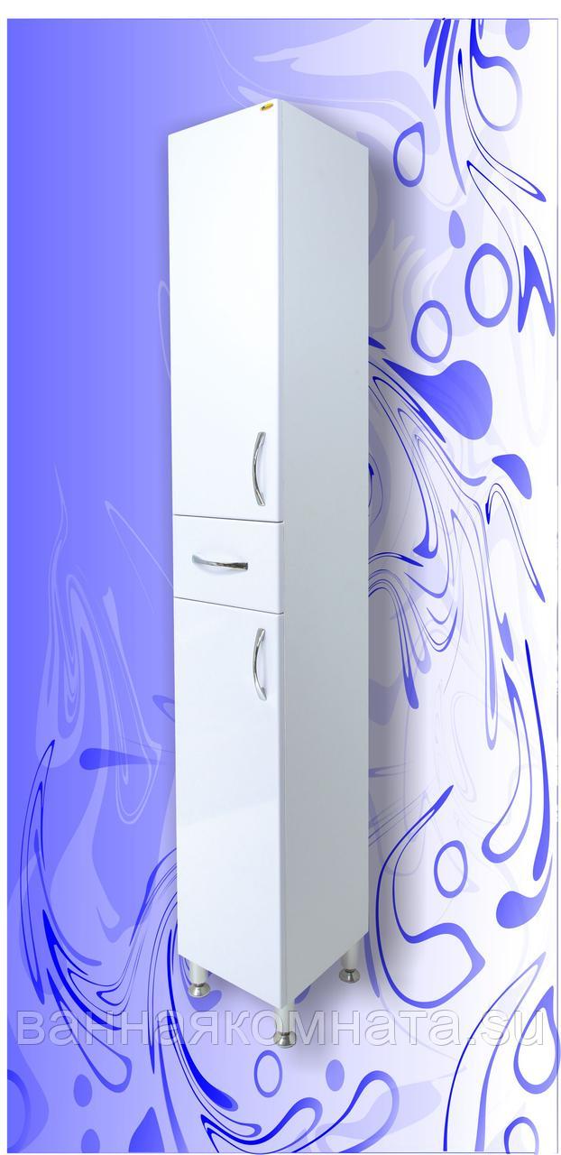 Узкий пенал для ванной комнаты, ни одной лишней детали, все предельно просто и аскетично. Шкаф функциональный и практичный: в верхней части изделия находится вместительное отделение с двумя полками, в центре – выдвижной ящик, куда можно поместить косметические средства или хранить чистые полотенца. Шариковые направляющие выдвижного ящика обеспечивают плавное и полное выдвижение, крепление-фиксатор предотвращает выпадение ящика. В нижней части пенала есть закрытое отделение с дверцей, внутри которого находится отделение с полкой, что очень удобно и функционально. При заказе указывайте, пожалуйста, в какую сторону должна открываться распашная дверца пенала, с учетом расположения мебели в Вашей ванной комнате.