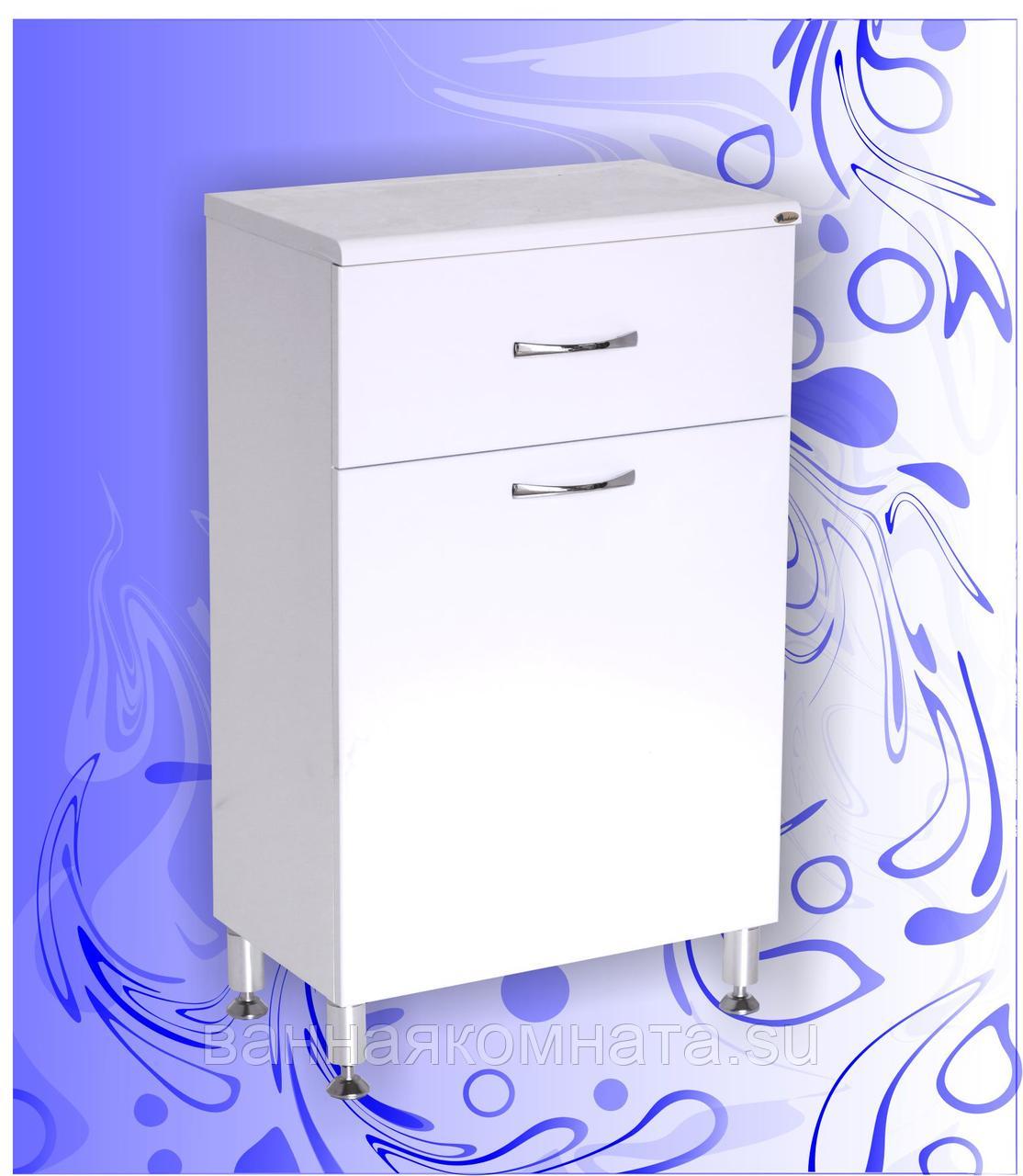 Удобная и практичная модель комода предназначена для хранения полотенец, халатов и прочих принадлежностей. Выполненная в современном стиле модель обладает массой функциональных достоинств: изделие оснащено выдвижным ящиком, а в нижней части комода размещена корзина для белья. Кроме того, свободной остается столешница комода. Модель выполнена из влагостойких материалов, способного противостоять условиям влажной агрессивной среды, свойственной ванным комнатам.