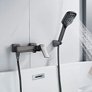 Смеситель для ванны с душем SHEVANIK S4002T Наружный настенный смеситель цвета "оружейная сталь" для ванны и душа. Изготовлен из латуни, управляется однорычажным механизмом с керамическим картриджем. Комплектуется душевым гарнитуром (лейка, шланг 1.5 м, держатель). Имеет поворотный излив длиной 20 см и боковое расположение рычага.