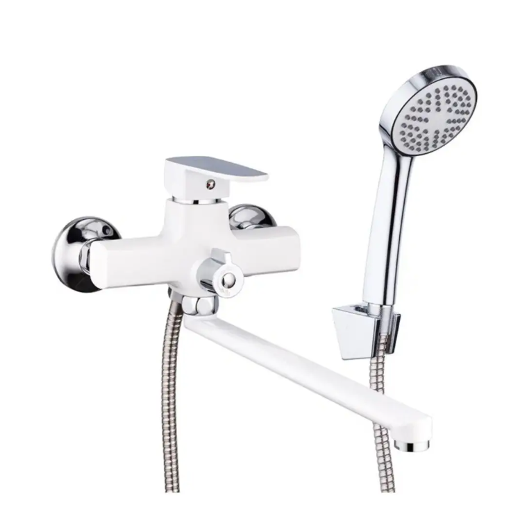 Смеситель для ванны и душа раковины белый с длинным изливом LEMEN