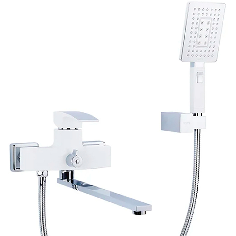Настенный смеситель с длинным изливом, серия G07 Комбинированный смеситель в стильном двухцветном дизайне «белый/хром». Основные характеристики: Материал корпуса: Латунь Цвет / Покрытие: Белый и хром (комбинированное) Тип: Настенный смеситель для душа/ванны Излив: Поворотный, длина 320 мм Шланг: 1.5 м Механизм: Рычажное управление, керамический картридж 35 мм Подключение: Резьба 1/2", жесткая подводка Лейка: 2 режима Габариты и параметры: Размеры (ГxШxВ): 390 x 170 x 155 мм Вес (брутто): ~3.44 кг Объем упаковки: ~0.012 м³ Термостат: Нет Страна производства: Китай Серия: G07