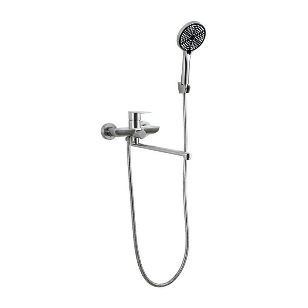 Настенный смеситель, серия Н806 Смеситель из нержавеющей стали в матовом сатиновом исполнении с длинным поворотным изливом. Основные характеристики: Материал корпуса: Нержавеющая сталь Покрытие: Матовое сатин Тип: Универсальный настенный смеситель Излив: Поворотный, длина 350 мм Шланг: 1.5 м Механизм: Рычажное управление, керамический картридж 35 мм Подключение: Резьба 1/2", жесткая подводка Монтаж: На стену Дополнительно: Глубина: 389 мм Форма: Округлая Страна производства: Китай Серия: Н806