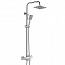 Термостатическая душевая система из нержавеющей стали с крупным квадратным душем. Основные характеристики: Материал корпуса: Нержавеющая сталь Покрытие: Матовое сатин Тип: Душевая система с термостатом Основной элемент: Стойка высотой 1450 мм Верхний душ: Тропический, квадратный, размер 300 x 300 мм Излив: Поворотный, длина 78 мм Шланг: 1.5 м Механизм: Вентильное управление, термостатический картридж Монтаж: На стену Лейка: 1 режим Термостат: Да Дополнительно: Держатель для лейки: На стойке Вес (брутто): ~5.74 кг Объем упаковки: ~0.031 м³ Форма: Квадратная Страна производства: Китай