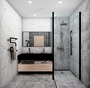 Коллекция Hit: Игра контрастов Global Tile представляет коллекцию Hit — керамогранит, где матовая основа сочетается с изящными глянцевыми чернилами. Рисунок мрамора в белоснежной гамме создаёт эффект глубины и роскоши, идеально вписываясь в эстетику неоклассики и современного стиля. Формат 30×60 см подчеркивает монументальность отделки, делая ванную комнату светлой, элегантной и визуально просторной.