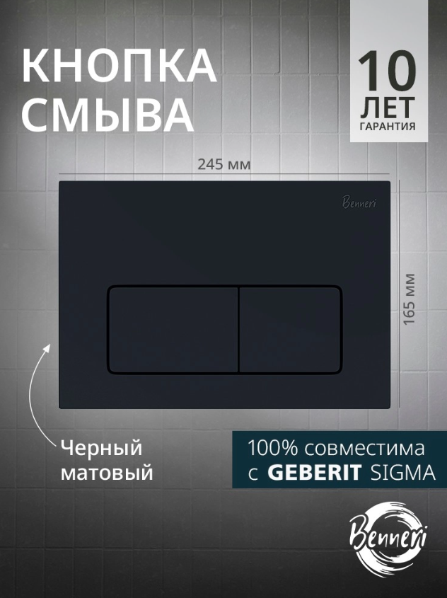 Кнопка смыва Benneri Luna черная